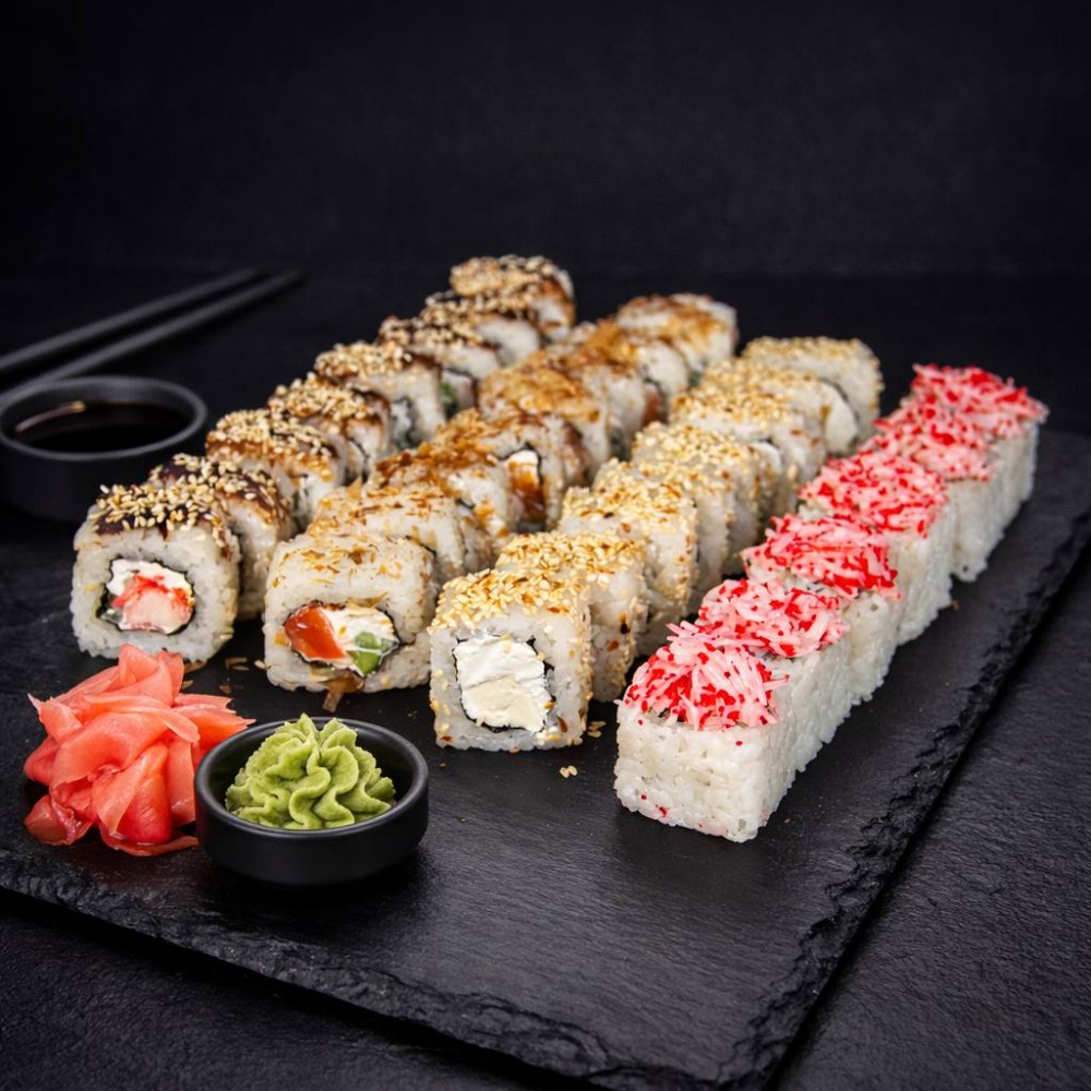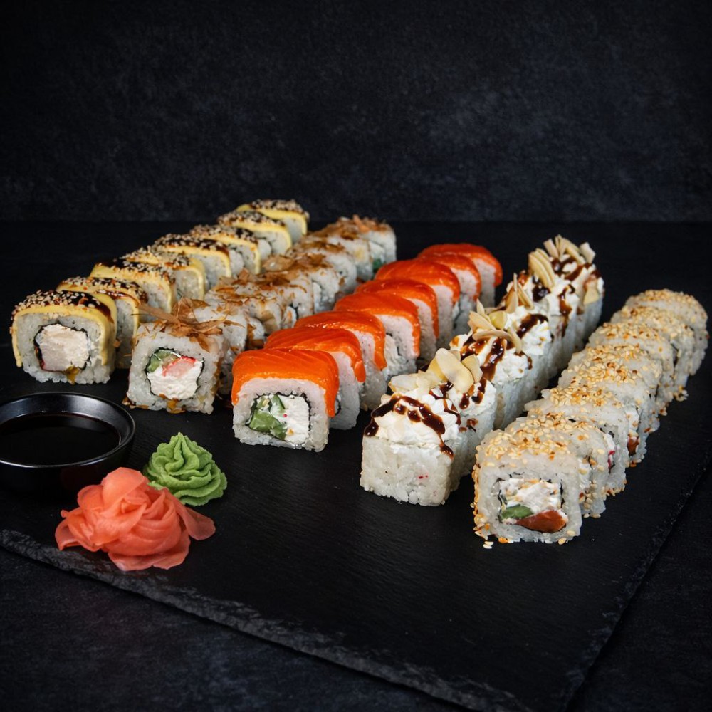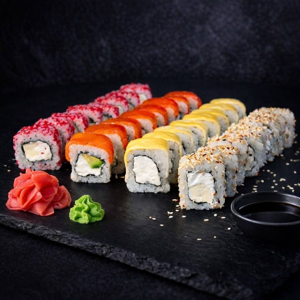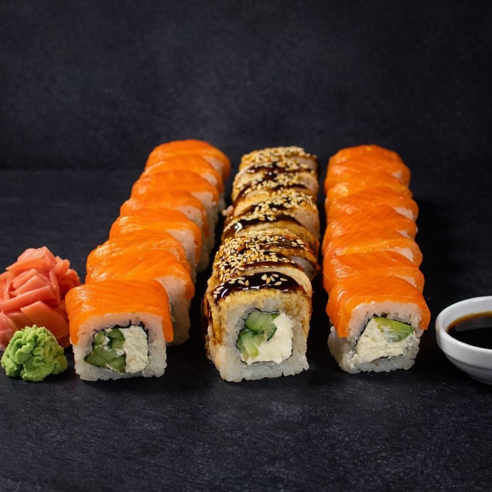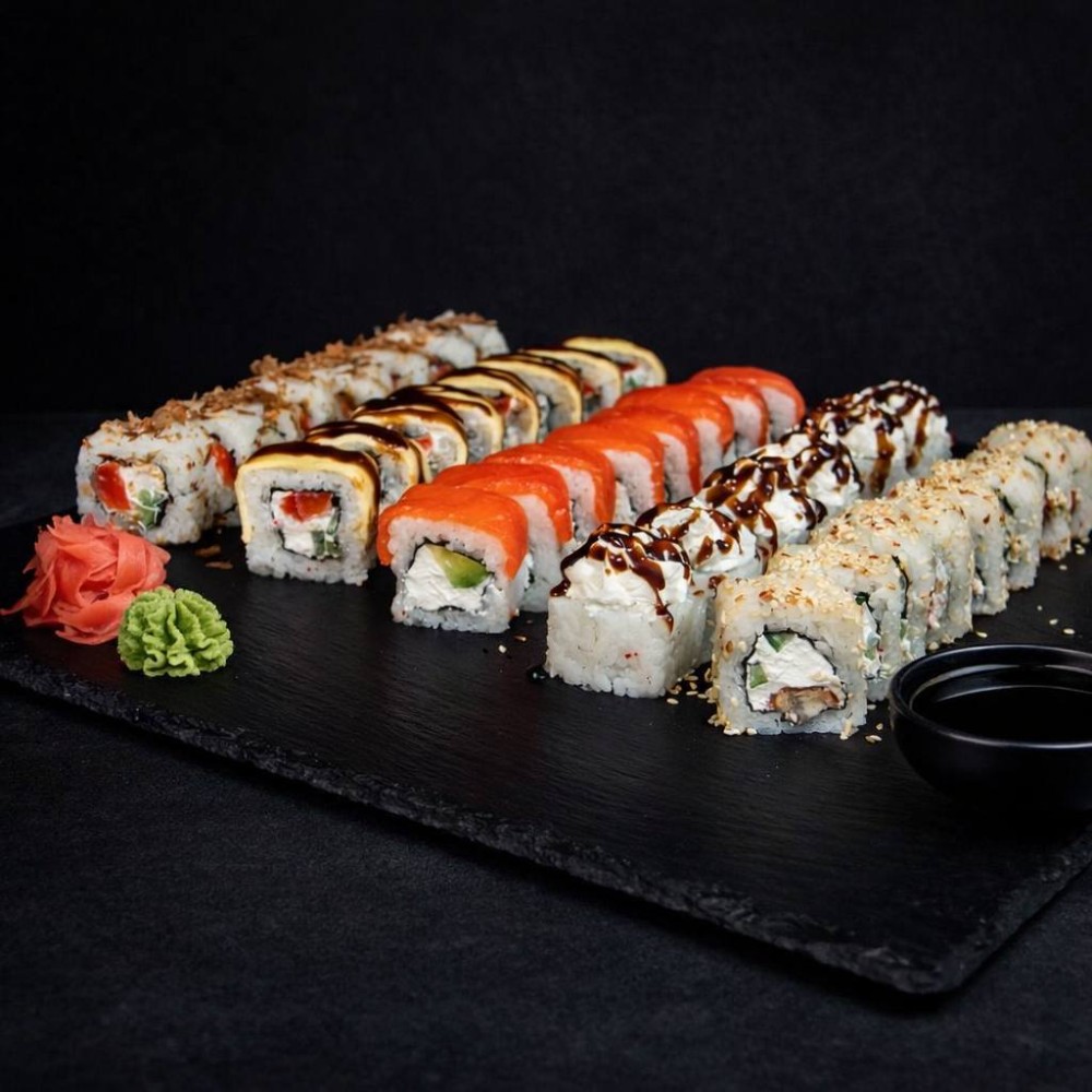 Рол Філадельфія, Рол Колорадо, Рол Три сири, Рол Банзай, Рол Футомакі з вугрем, Рол Банзай в чорному кунжуті.