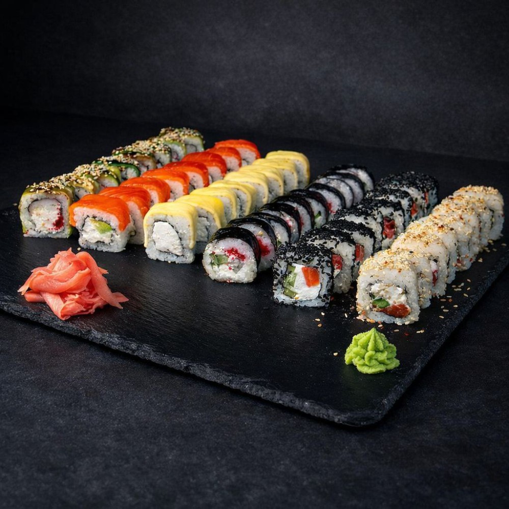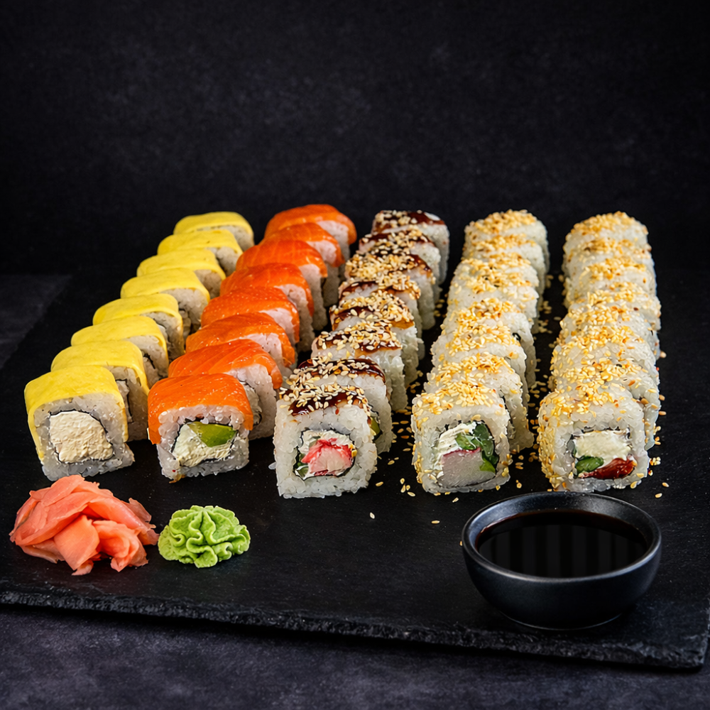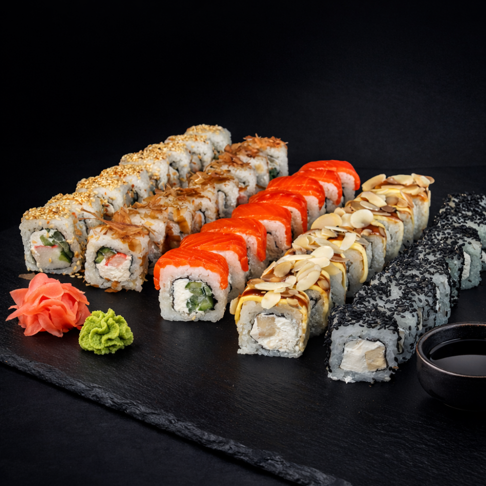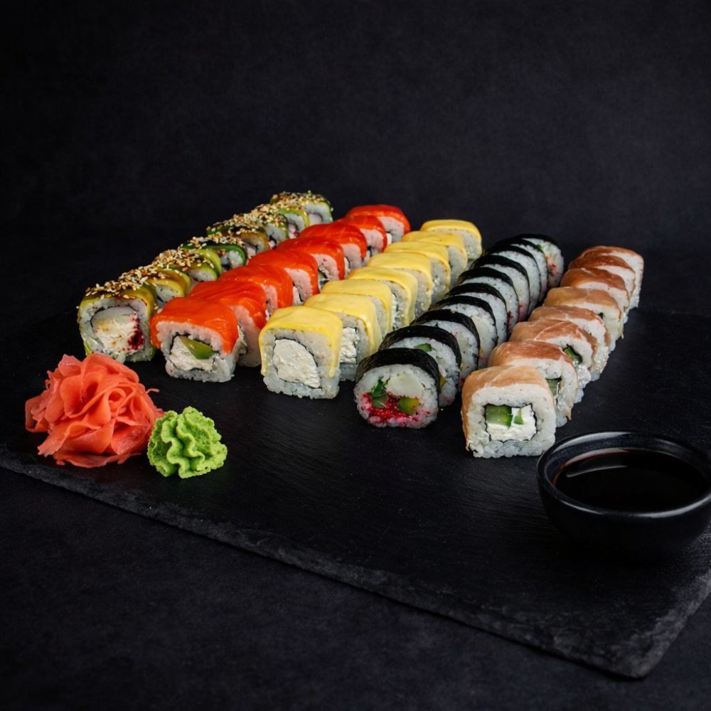Рол Філадельфія, Рол Колорадо, Рол Три сири, Рол Банзай, Рол Футомакі з вугрем, Рол Банзай в чорному кунжуті.