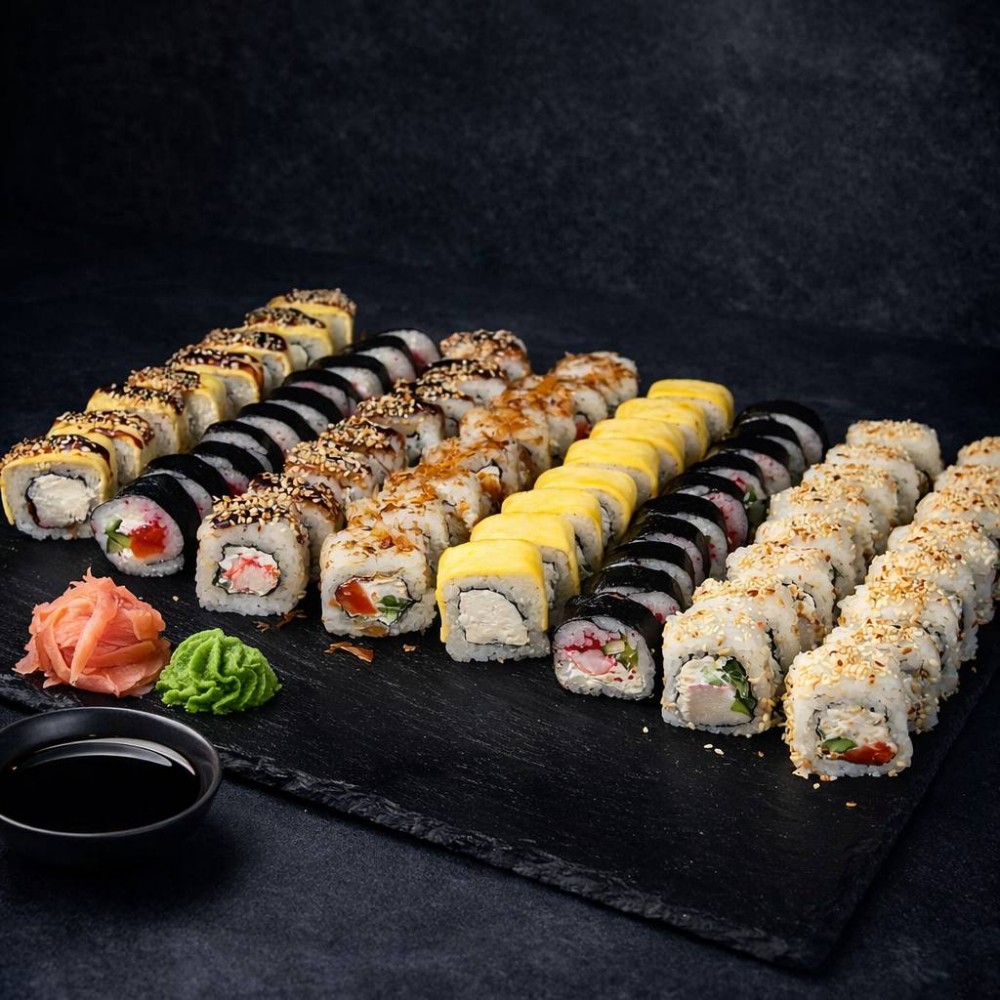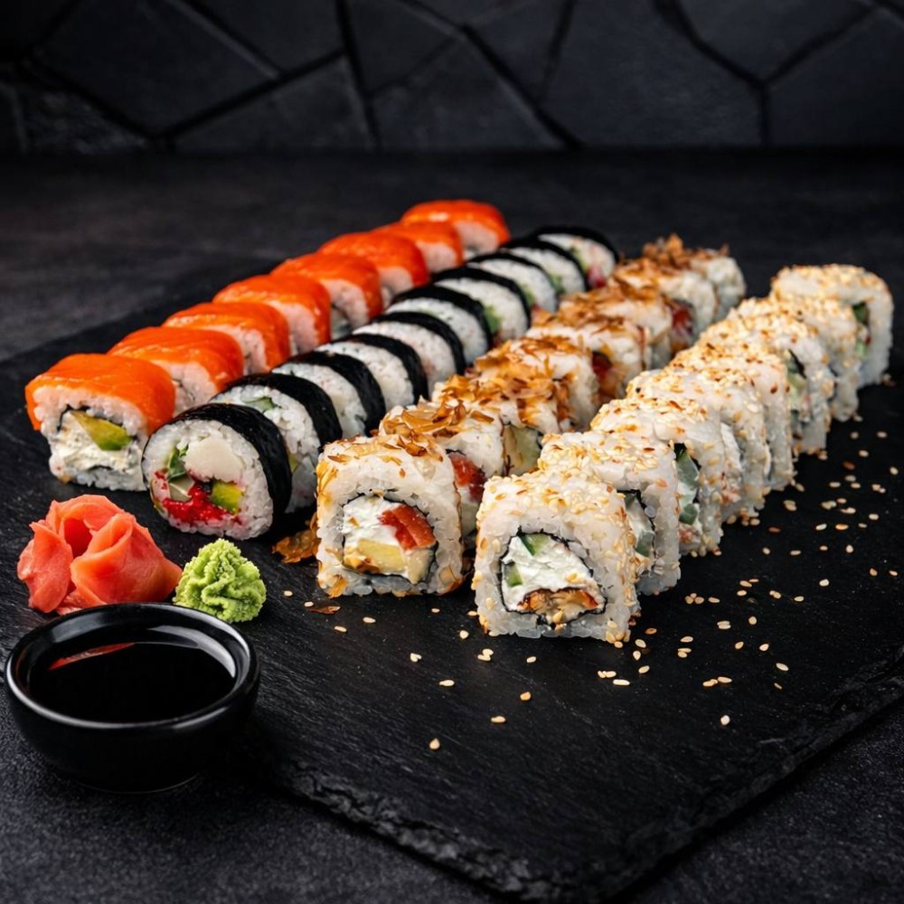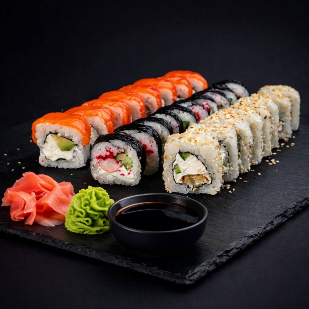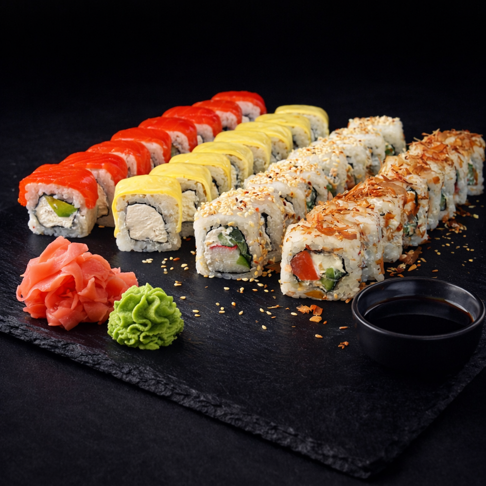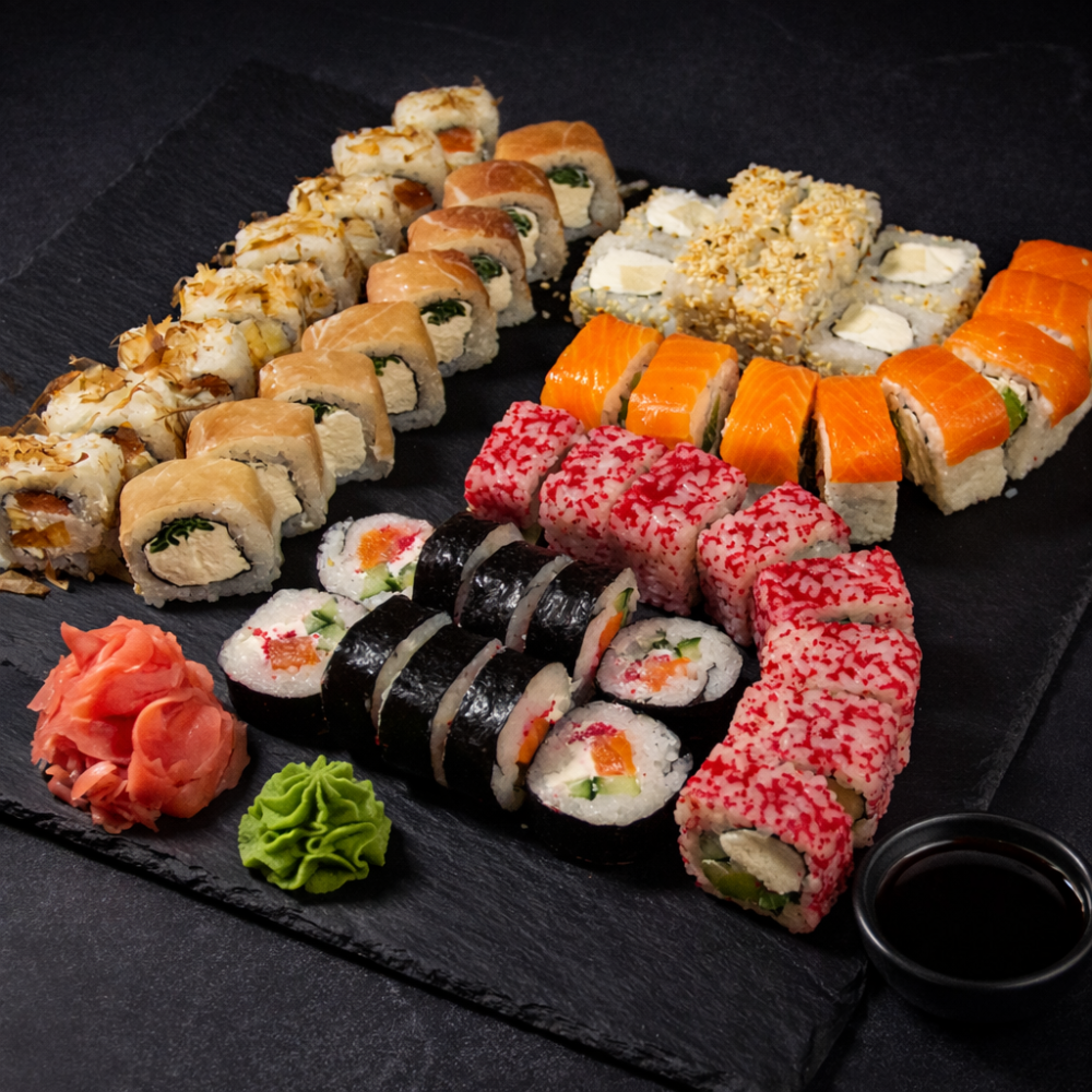 Рол Філадельфія, Рол Колорадо, Рол Три сири, Рол Банзай, Рол Футомакі з вугрем, Рол Банзай в чорному кунжуті.